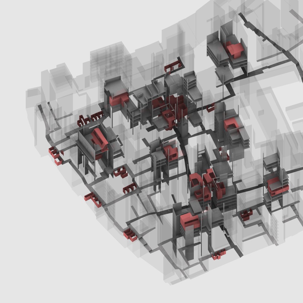 In this thesis, Kowloon Walled City (KWC) is selected to be the test case of the hypothesis, although it no longer exists. KWC will be re-examined and redesigned in a future context through integrations with IMEs. By placing IMEs as a distributed public system in high-density building clusters like KWC, negative effects of the lack of public spaces will be offset, traditional architectural boundaries defined by walls will be challenged, and novel spatial experience will emerge.